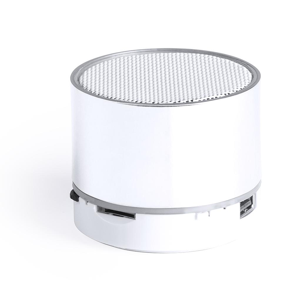Compacto altavoz de conexión Bluetooth® con interior iluminado. Superficie exterior especialmente diseñada para marcaje en láser y así iluminar el logotipo marcado. De diseño bicolor con suave acabado y conexión Bluetooth® 3.0, ofrece 3W de potencia, tiene función de manos libres, una ranura para tarjetas micro SD de hasta 32 GB de capacidad, función radio FM, entrada auxiliar de línea mediante conexión jack de 3,5mm y soportes de goma antideslizantes en la base. Compatible con iOS y Android, incluye cable de carga mini USB, cable auxiliar jack de 3,5mm y viene presentado en atractiva caja de diseño. Con base antideslizante.