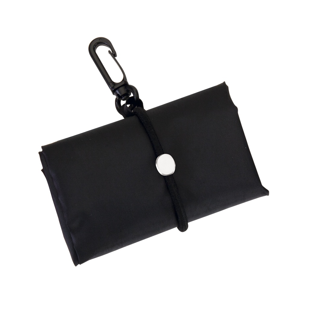 Bolsa plegable en divertidos y variados colores. De suave poliéster 190T, con elástico para plegado y mosquetón de transporte. De acabado cosido.