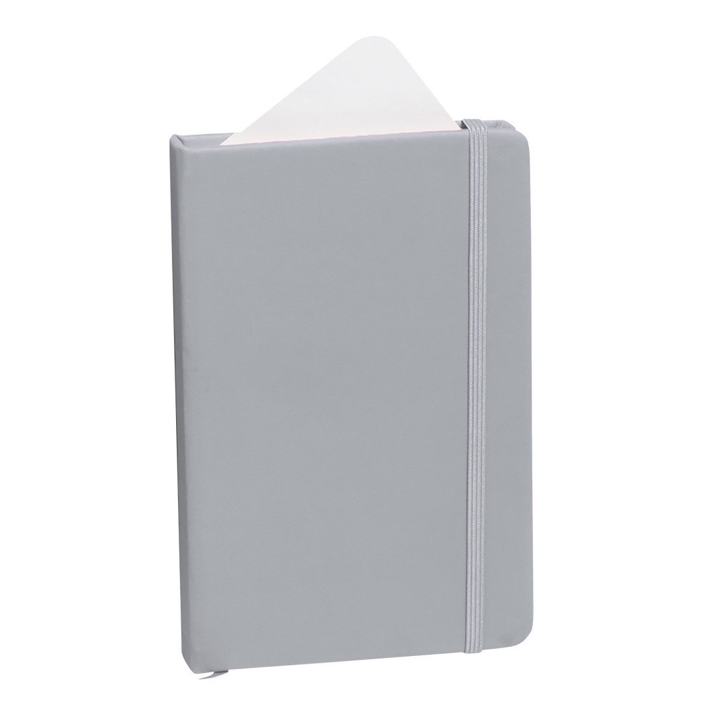 Bloc de notas con tapas de suave tacto, acabado en polipiel y en desenfadados colores. De 100 hojas lisas, con elástico de sujeción y marcapáginas de tela a juego. Portada Rígida. 100 Hojas. Medida 9.3 x 14.3 x 1.5 cm