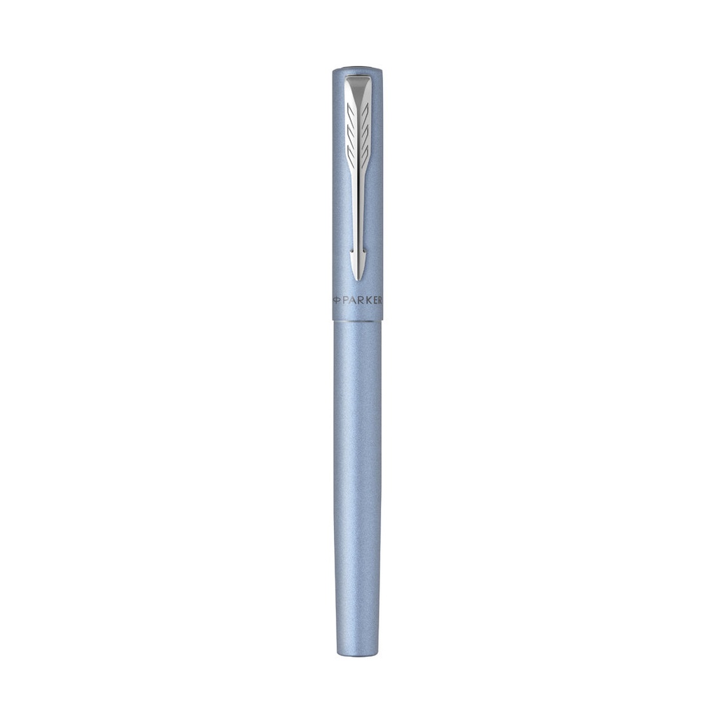 Roller Parker Vector XL, fabricado en acero inox pulido, resaltado con un adorno cromado y el inconfundible clip con la forma icónica en punta de flecha de la marca en la capucha. En tinta negra y presentado en estuche individual negro con logotipo Parker. 1 logotipo estampado en serigrafía a 1color.