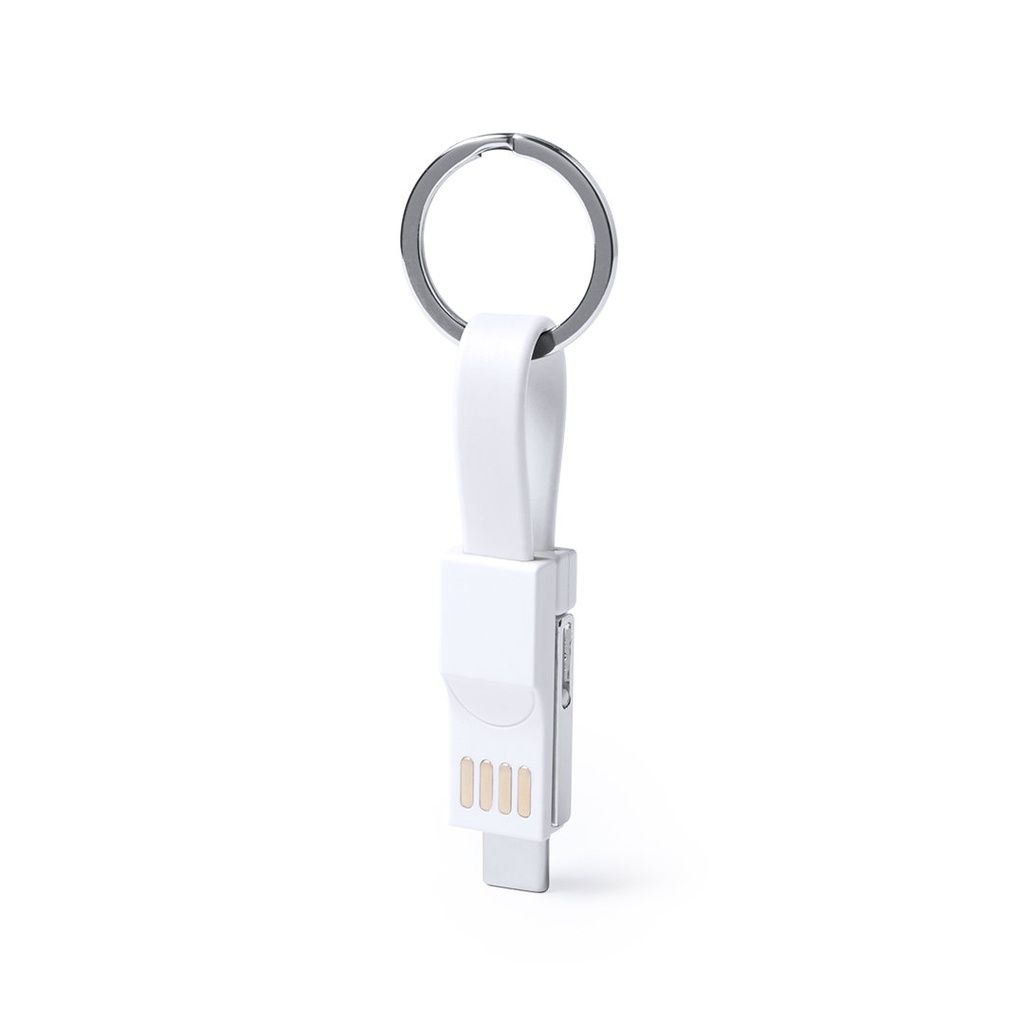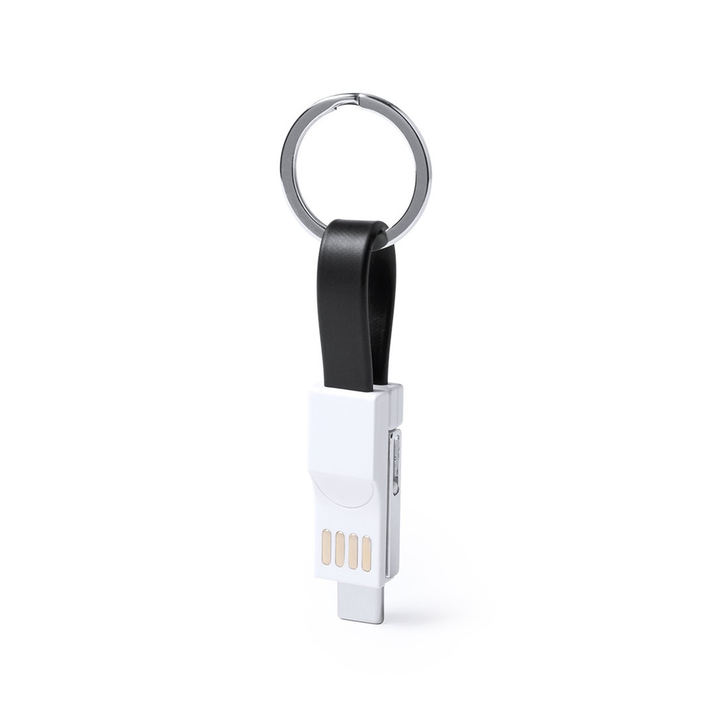 Cargador sincronizador magnético con cuerpo en variada gama de colores. Conexiones tipo C y dual micro USB/lightning. Con anilla para transporte. Presentado en atractiva bolsita de diseño.