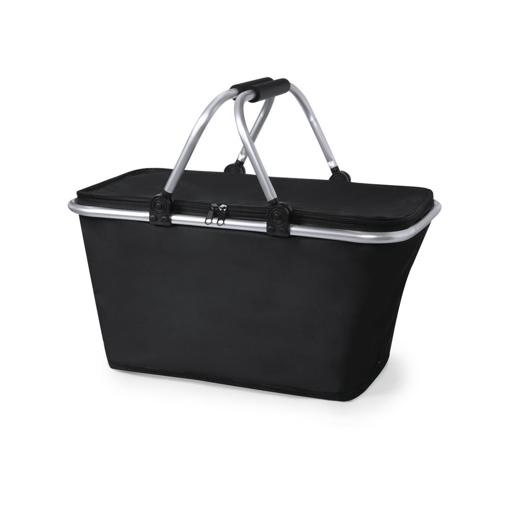Cesta térmica en resistente poliéster 600D con interior de aluminio libre de BPA. Cierre de cremallera, con estructura de aluminio plegable y asas con EVA para mayor comodidad en el transporte. Resistencia de hasta 15 kg de peso y disponible en vivos colores. 1 logotipo estampado en serigrafía a 1 color. Pedido mínimo: 100 unidades.