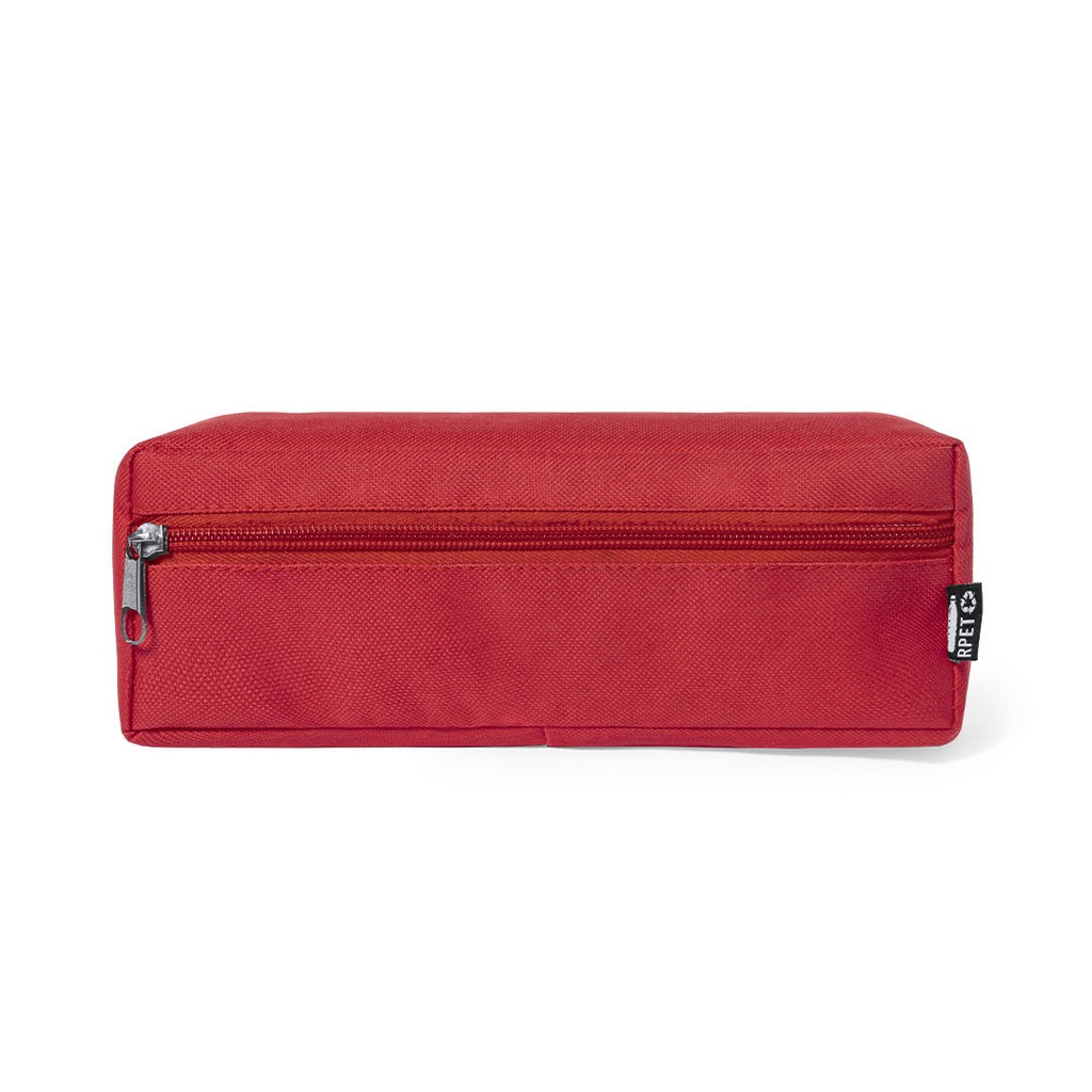 Estuche en resistente poliéster 600D RPET, elaborado a partir de plástico reciclado, para así fomentar la reutilización de residuos plásticos y ayudar a la sostenibilidad del planeta. Con cierre de cremallera en frontal y tirador metálico. Distintivo RPET en etiqueta.