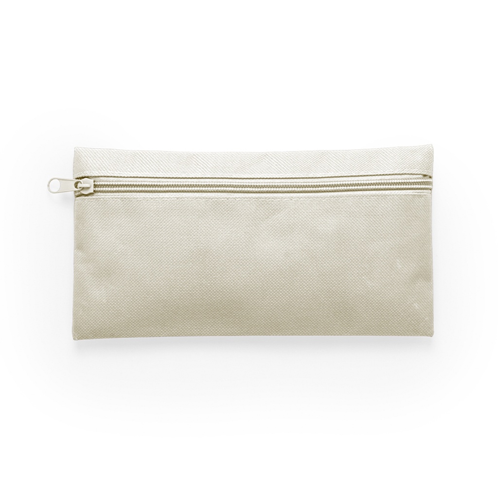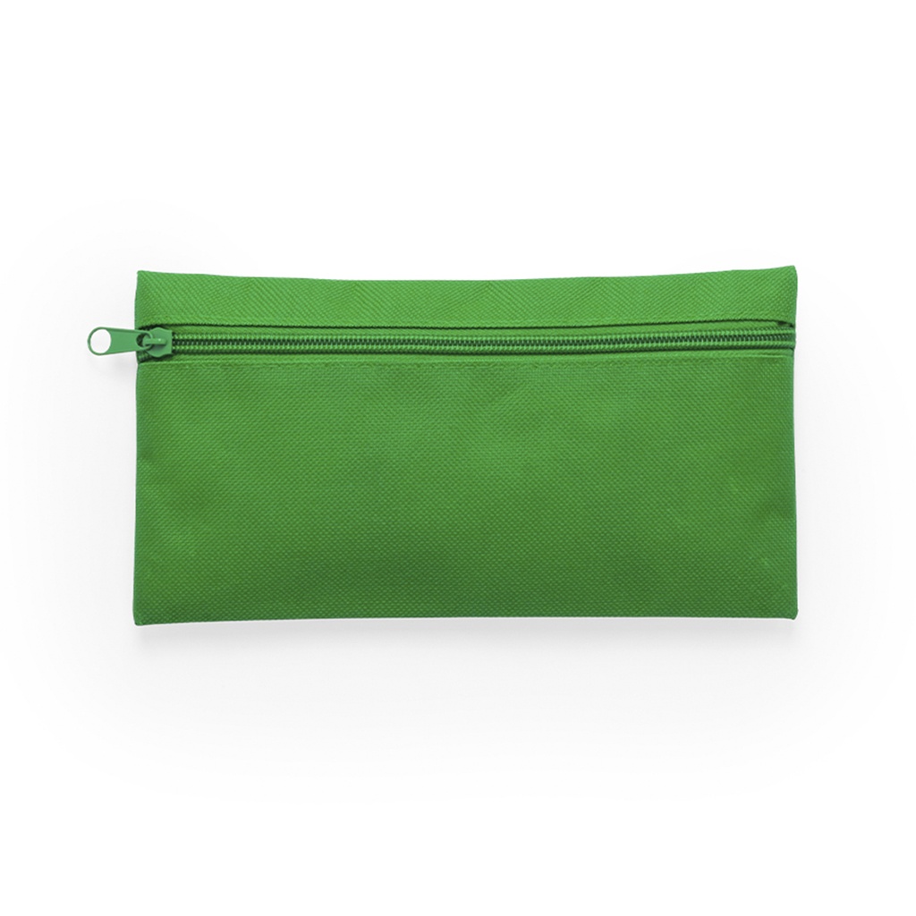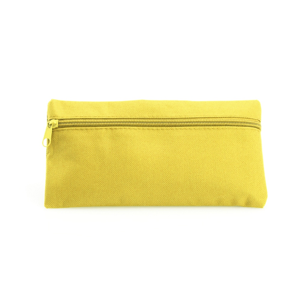 Estuche de cremallera frontal en resistente poliéster 600D de vivos colores. Con cremallera a juego.
