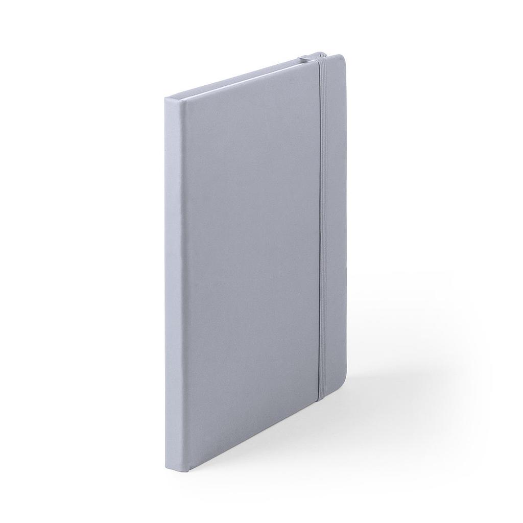Bloc de notas con tapas de suave tacto, acabado en polipiel y en desenfadados colores. De 100 hojas lisas, con elástico de sujeción y marcapáginas de tela a juego. Portada Rígida. 100 Hojas. Medidas 14.7 x 21 x 1.5 cm. 1 logotipo estampado en serigrafía a 1 color. Pedido mínimo: 100 unidades.