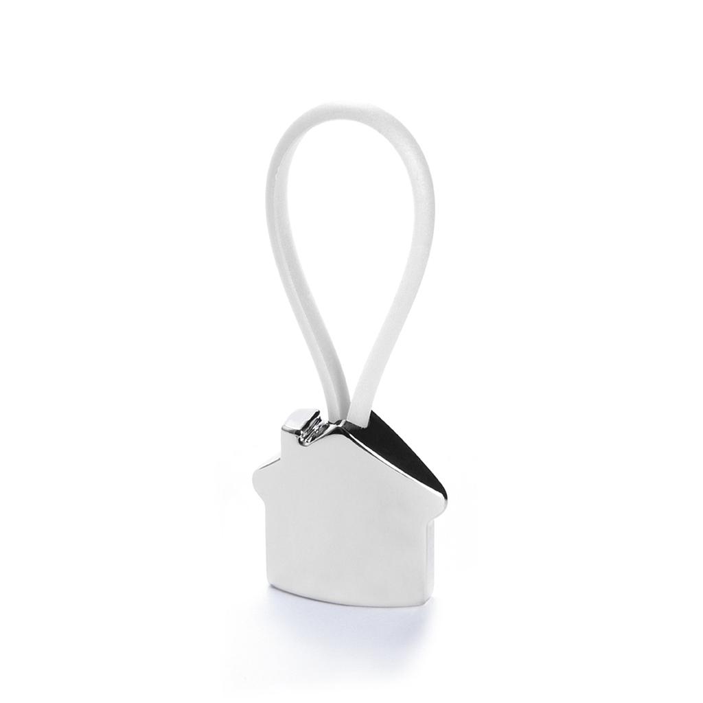 Llavero metálico en divertido diseño 3D de casa. Con cinta de goma en variados y vivos colores.