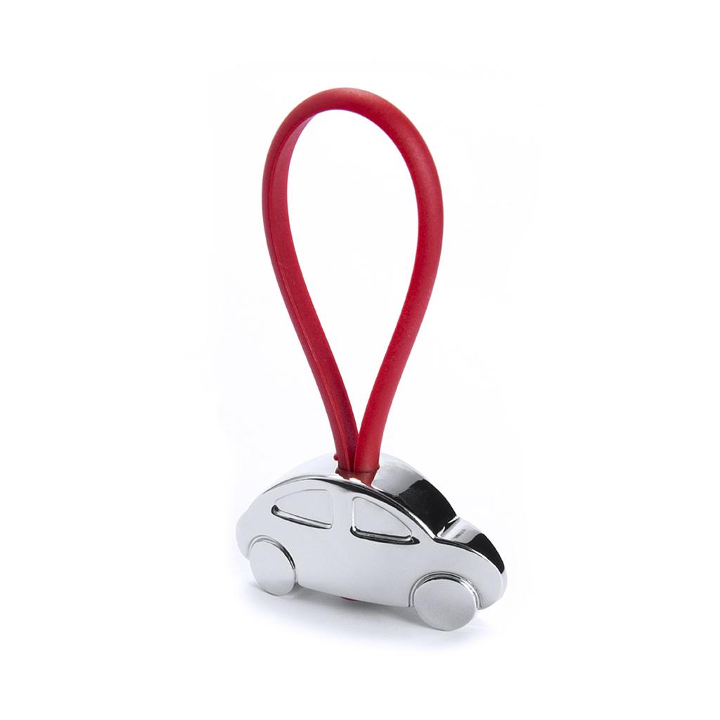 Llavero metálico en divertido diseño 3D de carro. Con cinta de goma en variados y vivos colores.