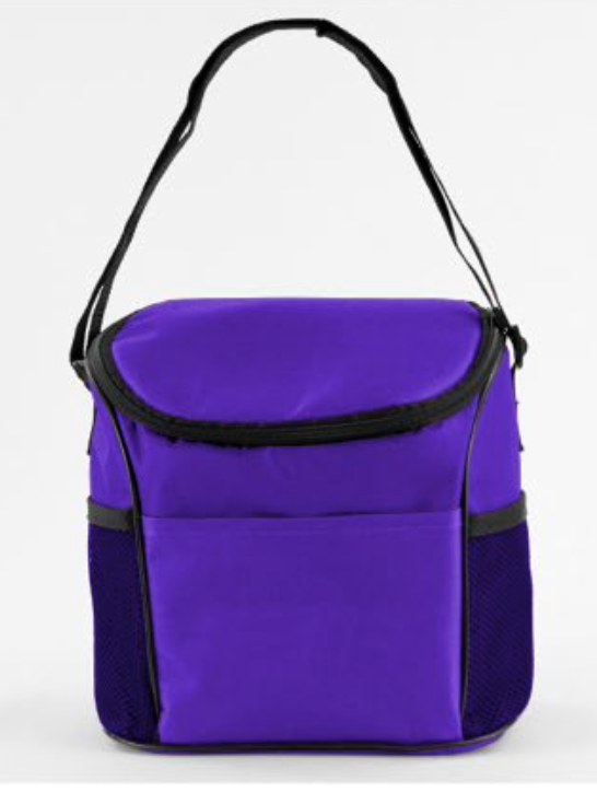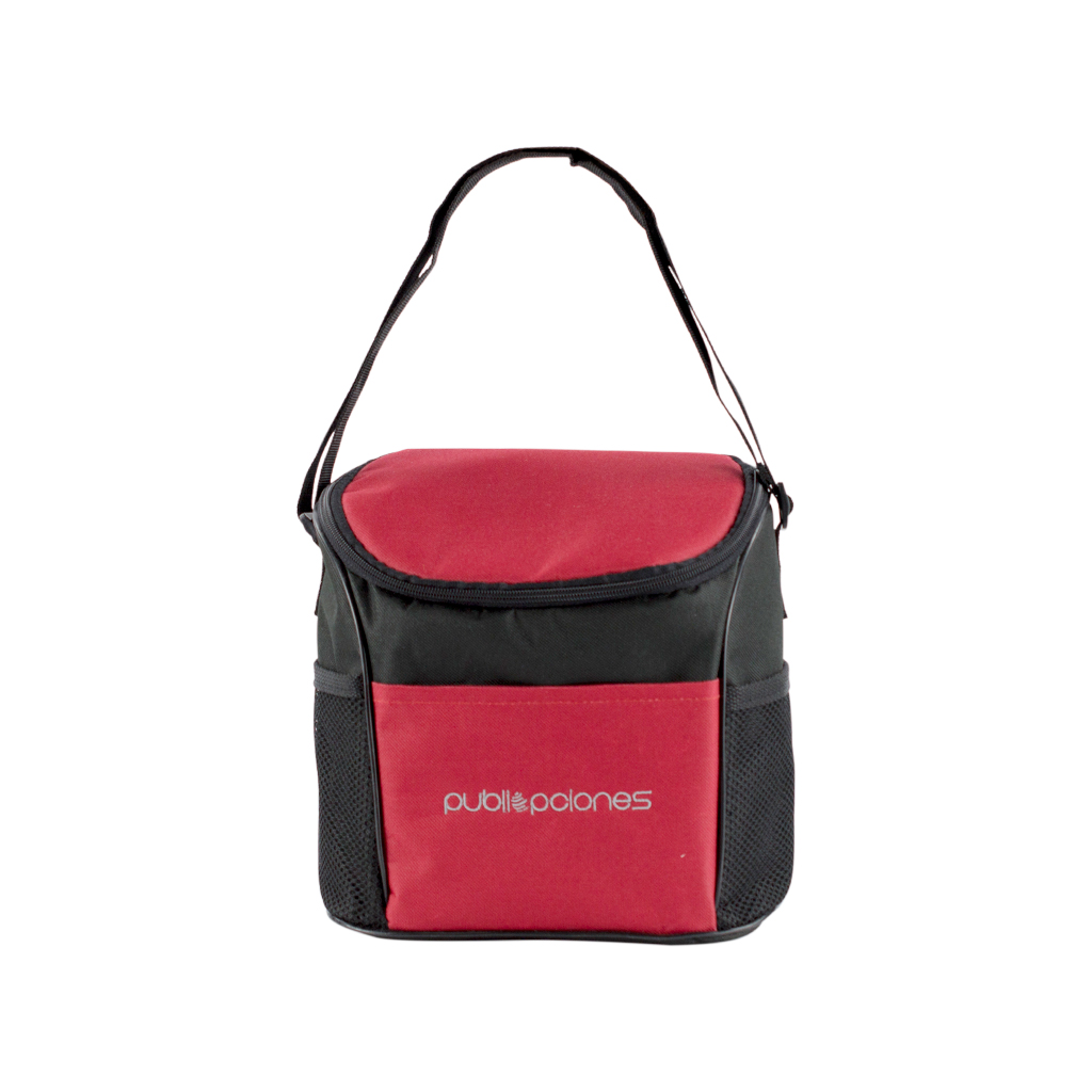 Lonchera elaborada en Lona Oxford en amplia variedad de colores, zipper de cierre frontal y faja ajustable color Negro, bolsa en el frente, bolsas de redecilla color Negro en los costados.