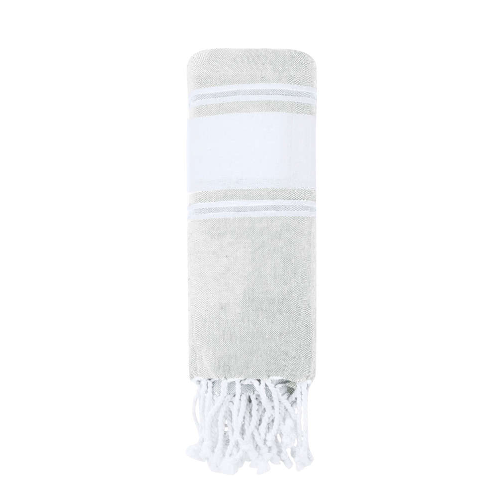 Suave toalla en 100% algodón reciclado de 180g/m2. Disponible en variada gama de colores en tono bicolor. Logotipo en etiqueta lateral. Presentado individualmente en bolsa. 1 logotipo estampado en serigrafía a 1 color.